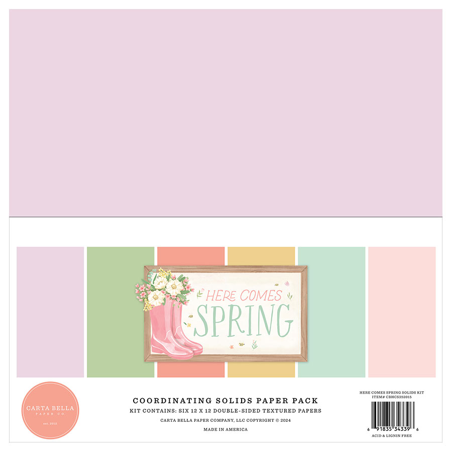 Kit de papiers unis, appartenant à la collection « Here Comes Spring » de la marque Carta Bella.